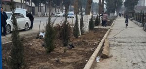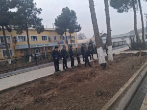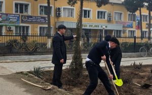 Шинонидани дарахтони ҳамешасабз. Шинонидани дарахтони ҳамешасабз ва гулу бутаҳо дар назди бинои суди ноҳия.